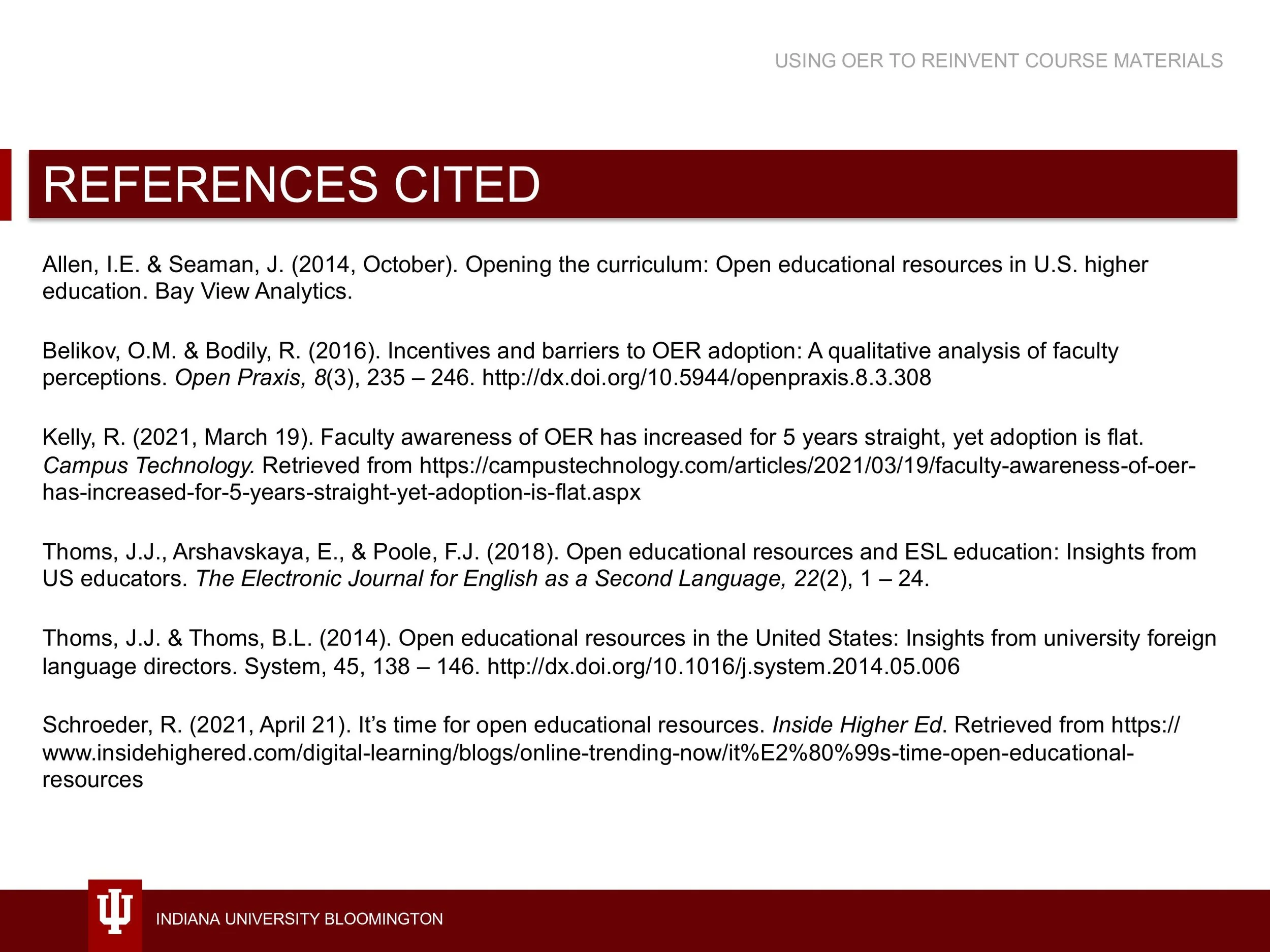 I presented the results of my work at a state conference in order to help other educators utilize OER in their courses.