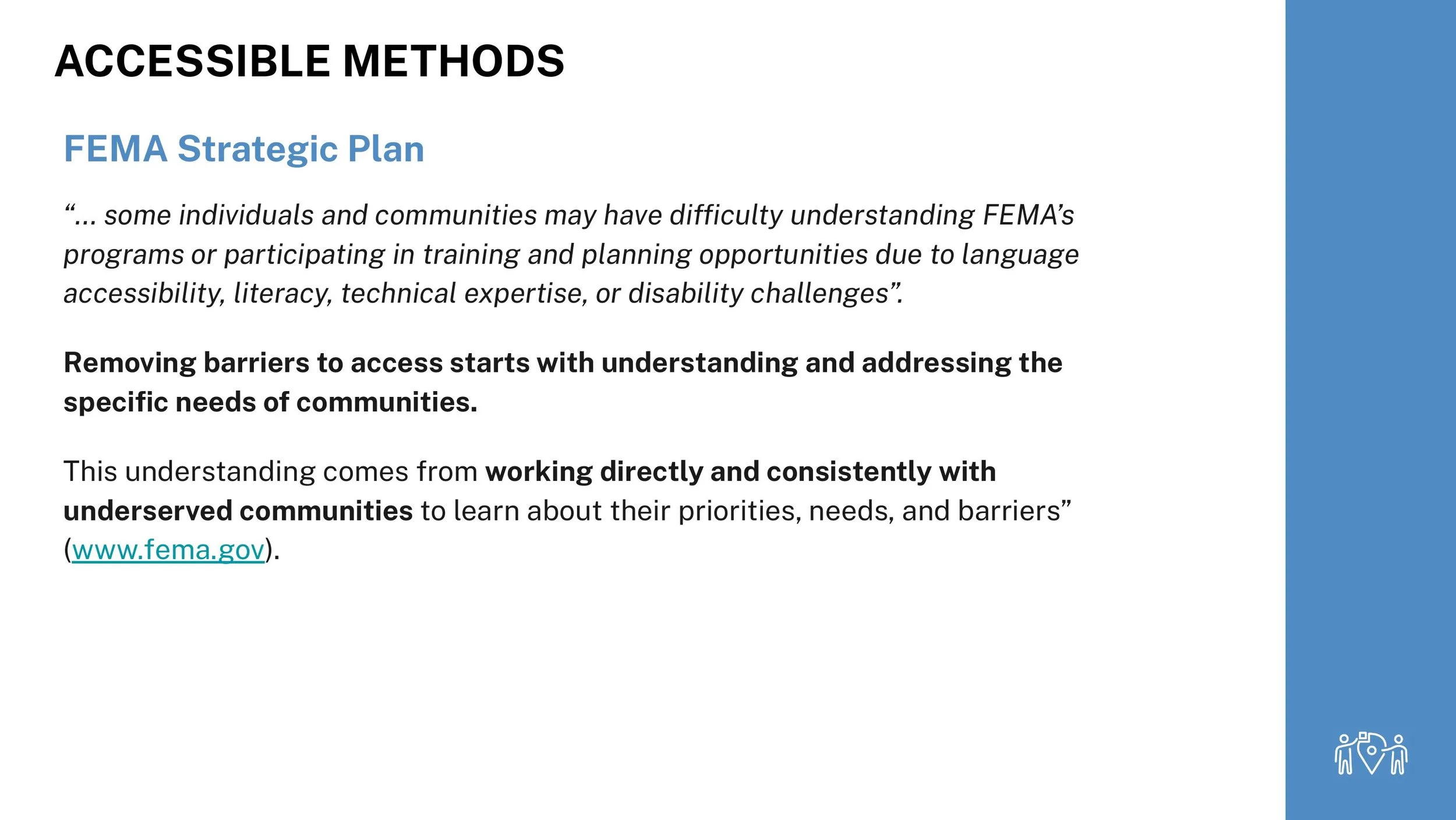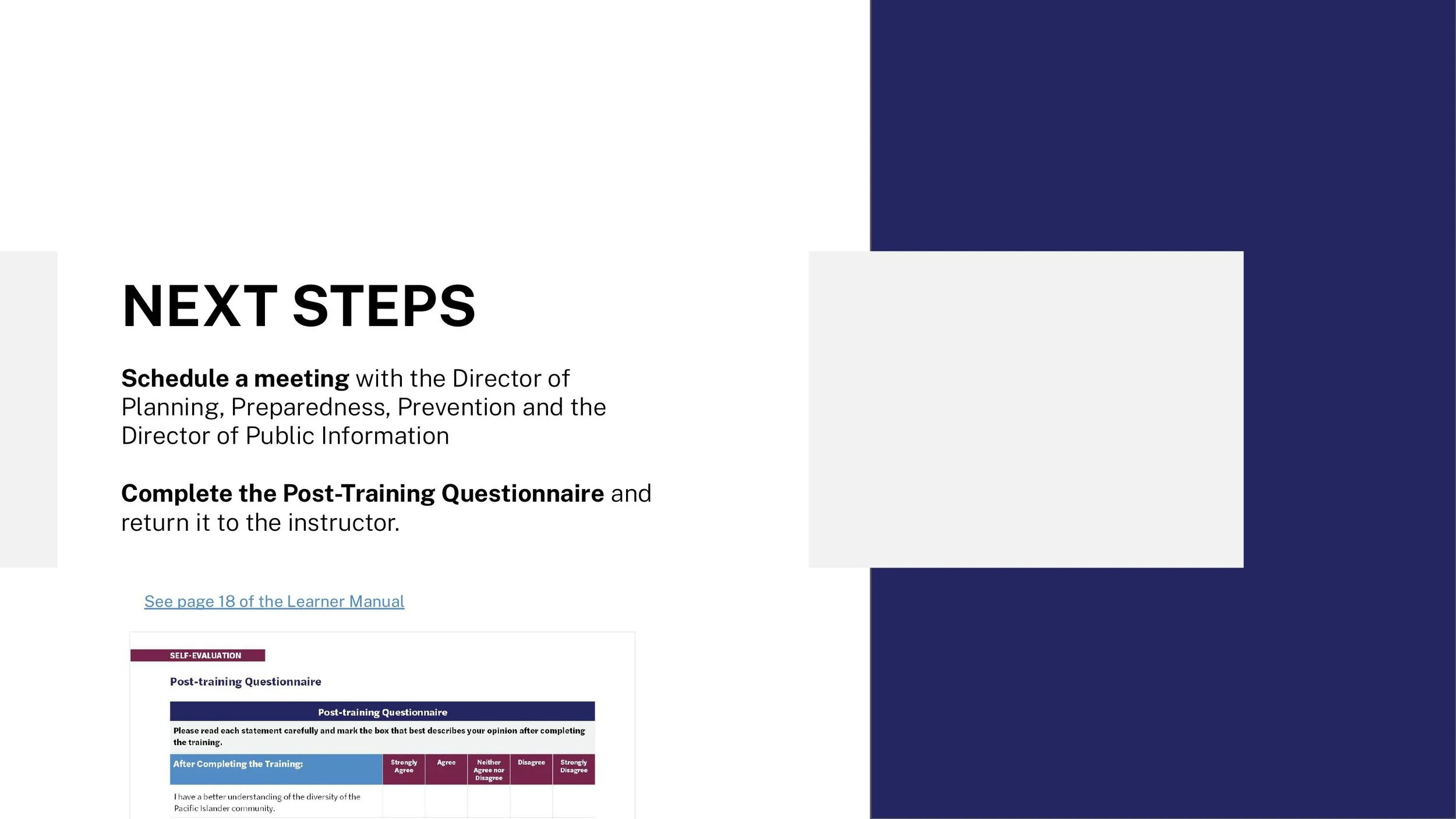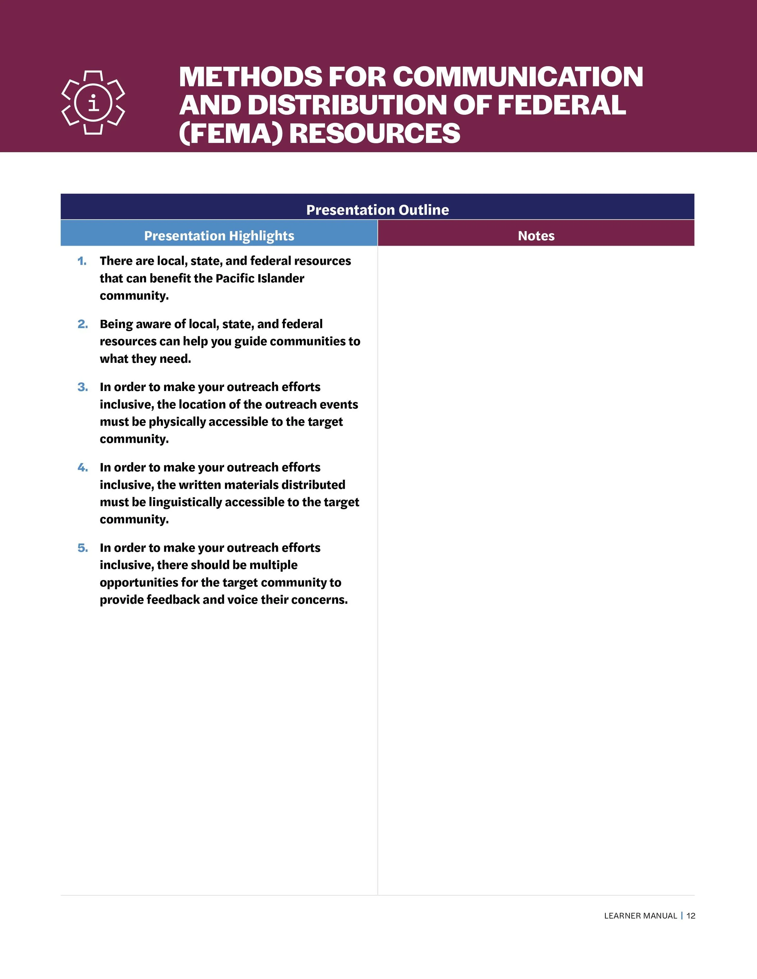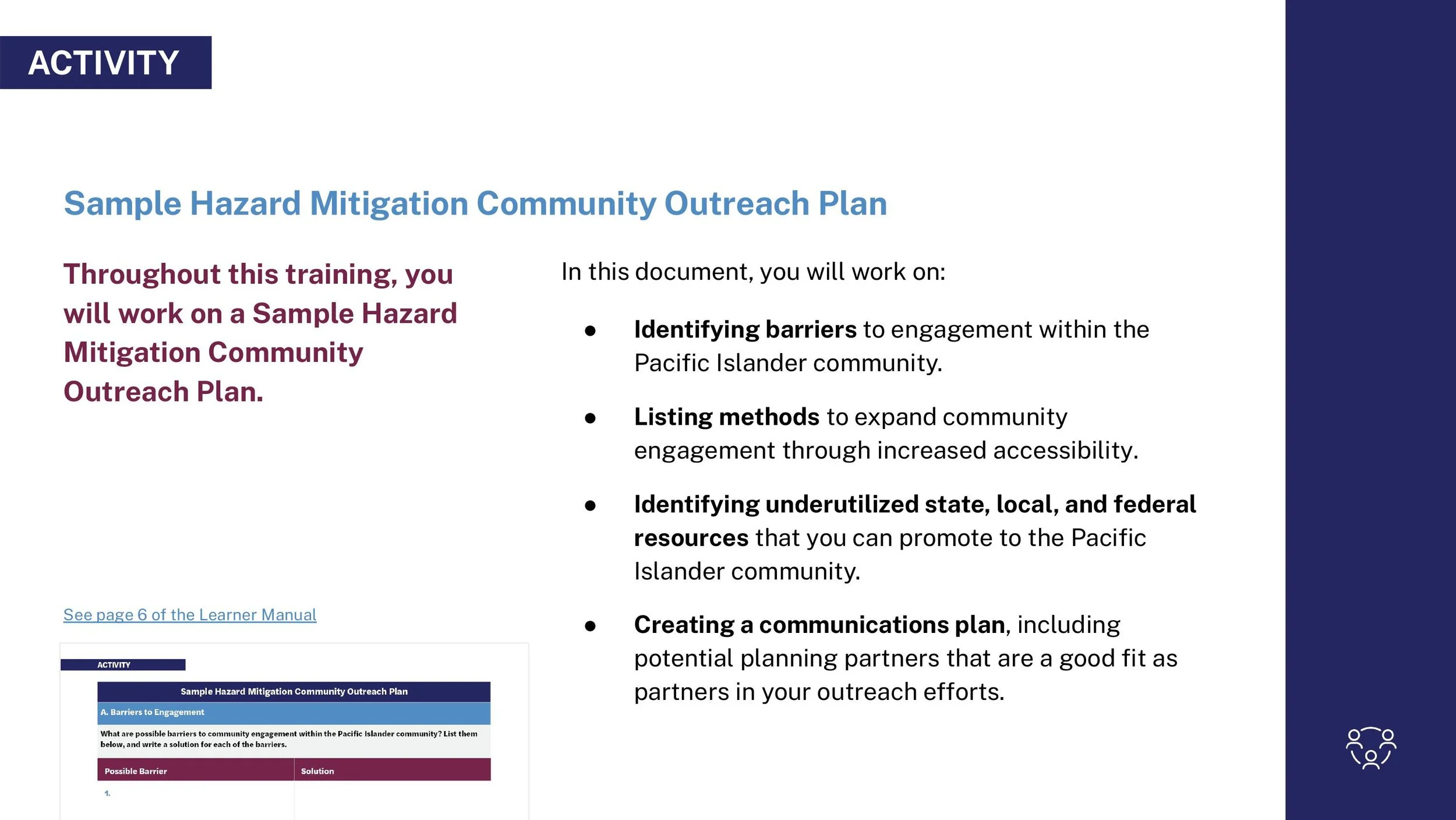 I was part of a team that designed a comprehensive training solution to improve outreach inclusion and accessibility to the Pacific Islander Community for FEMA’s Local Disaster Recovery Managers.